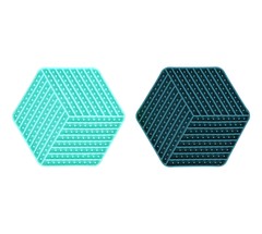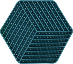 Accesorio para perros diseñado para fomentar el comportamiento natural de lamer y ayudar a reducir la velocidad de alimentación. El tapete tiene un diseño hexagonal con pequeñas protuberancias que simulan la textura de la hierba y proporcionan una superficie divertida y atractiva para que tu perro lama su comida. El tapete para lamer está hecho de TPR, un caucho termoplástico flexible, que es duradero y fácil de limpiar. Además, el tapete tiene una base antideslizante que evita que se deslice mientras tu perro lo usa. El tapete es apto para ser utilizado con comida húmeda, pasta de golosinas y golosinas en general, lo que lo hace muy versátil. También es adecuado para cachorros y gatitos, y se puede meter en el congelador para proporcionar un estímulo fresco y agradable a su lengua mientras lamen su comida. Además, el uso del tapete para lamer puede ayudar a prevenir la indigestión, la obesidad y otros problemas de salud asociados con la alimentación rápida y el engullimiento de comida. Es importante tener en cuenta que el tapete para lamer no debe ser introducido en el lavavajillas y debe ser limpiado regularmente para mantener una higiene adecuada. En general, el tapete para lamer "Leki Hexágono" es un excelente accesorio para perros que fomenta el comportamiento natural de lamer y ayuda a mantener una alimentación saludable y equilibrada.