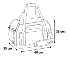 Material: poliéster con relleno: espuma para mantener la forma | Se puede limpiar con paño húmedo | Tiras reflectantes y pequeña abertura para accesorios | Bucles para cinturón de seguridad y se puede acoplar a un carrito | Base extraíble con funda extraíble y lavable a 30°C | Cinturón con mosquetón para mayor seguridad | Correas de transporte y correa de hombro ajustable | Medidas: 48CM L X 25CM AN X 33CM AL |Peso máximo del perro : 7kg
