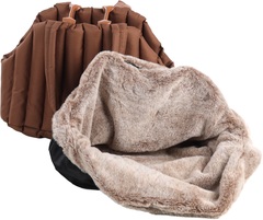 Material: poliéster con relleno: espuma para mantener la forma | Se puede limpiar con paño húmedo | Con funda interior extraíble y lavable a 30°C | Abertura en superior | Cinturón interno ajustado con mosquetón para mayor seguridad | Correas de transporte y asas | Disponible en dos tamaños: Pequeño 41cm L x 28cm An x 30cm Al | Grande 49cm L x 30cm An x 32cm Al |Peso máximo de carga hasta 5kg el pequeño |Hasta 7kg el grande