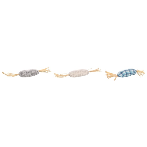 Juguetes divertidos y atractivos para gatos. Cada juguete está diseñado en forma de un caramelo de tela con diferentes colores y patrones, lo que lo hace atractivo y emocionante para los gatos. Los juguetes están hechos de tela suave y resistente, lo que es seguro y cómodo para que los gatos lo agarren, rasguñen y muerdan. Además, cada juguete incluye un relleno interno de algodón, lo que lo hace suave al tacto y cómodo para que los gatos lo sostengan y jueguen con él. Perfecto para fomentar el instinto natural de juego y caza de los gatos, y puede ayudar a reducir el aburrimiento y la ansiedad en los gatos. Además, es ideal para juegos interactivos de lanzamiento y recuperación, lo que puede fomentar la actividad física y el ejercicio en los gatos. Viene en tres colores y patrones diferentes, lo que lo hace atractivo y emocionante para los gatos de todas las edades. Además, los juguetes son fáciles de limpiar y mantener, lo que los hace perfectos para el uso diario.