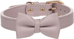 ¡Deja brillar a tu amigo peludo con este encantador collar con lazo Nela en un hermoso tono morado! ¡Hecho de cuero sintético con una hebilla dorada mate y lindos remaches! ¡El lazo desmontable le da el toque final! ¡Perfecto para tu pequeño compañero de cuatro patas!