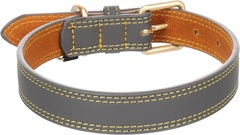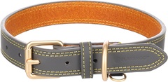 ¡El collar Virginia Gris es perfecto para tu perro! Hecho de cuero resistente y con una hebilla dorada mate. Con el anillo para colgar una placa de identificación, nunca perderás a tu mascota. ¡Robusto y elegante!