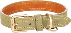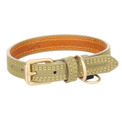 ¡El collar verde Virginia es perfecto para tu perro! Hecho de cuero resistente y terminado con una hebilla dorada mate. Cosido a mano para mayor durabilidad y con un práctico anillo para colgar una placa de identificación. ¡Elegante y práctico!