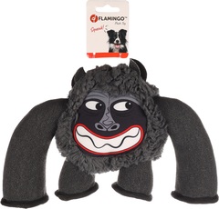 Divertido juguete de felpa en forma de gorila negro con un tamaño de 30 cm de largo, 9 cm de ancho y 21 cm de alto. Este juguete está diseñado para estimular la curiosidad y el instinto de caza de su perro, mientras que también proporciona un estímulo auditivo gracias a su sonido incorporado. El juguete está hecho de materiales de alta calidad y duraderos, asegurando una larga vida útil y resistencia a la mordedura y a los rasguños. La textura de la felpa también es suave y cómoda para la boca de su perro, haciendo que el juguete sea fácil de agarrar y llevar en la boca.