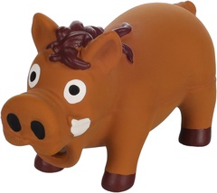 Juguete de látex diseñado para proporcionar una actividad divertida y estimulante para tu perro. El juguete cuenta con un diseño realista de un jabalí con colores vibrantes y detalles cuidadosamente elaborados para que parezca lo más real posible. El juguete cuenta con un sonido de gruñido incorporado, lo que lo hace aún más atractivo para tu perro y estimula su instinto de caza y juego. El juguete también tiene una textura suave y flexible, lo que lo hace perfecto para que tu perro lo muerda y juegue con él sin lastimarse. Las dimensiones del juguete son 6 cm de largo, 15 cm de ancho y 8.5 cm de alto, lo que lo hace lo suficientemente grande para que tu perro lo agarre y juegue con él cómodamente. Además, el juguete también es resistente y duradero, asegurando que tu perro pueda disfrutar de él durante mucho tiempo.