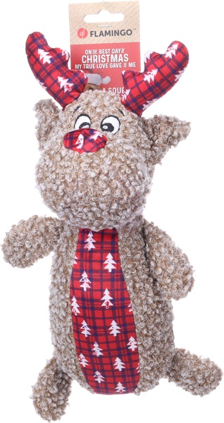 Haz que tu peludo brille esta Navidad con Krola, el alegre reno. Hecho de suave peluche y con un squeaker para más diversión. Un diseño único de Flamingo que sin duda encantará a tu perro. ¡El regalo navideño definitivo para tu peludo!