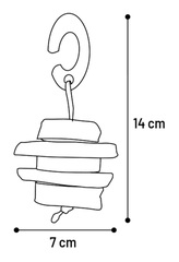 ¡Cuelga este juguete mordedor para tu amiguito peludo! Hecho de madera, maíz y sisal, es perfecto para morder y mantener los dientes sanos. Con un práctico gancho de madera para colgar