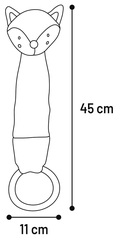 Material: textil |Con sonido para que disfruten jugando Con asa para fomentar el juego |Dimensiones: 11cm L x 11.5cm An x 45cm Al