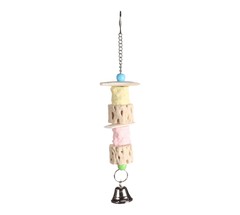 Juguete diseñado especialmente para entretener a los periquitos. Está hecho de yeso, lo que lo hace seguro para que los periquitos lo muerdan y jueguen con él. Además, cuenta con una campana que produce sonidos para estimular su curiosidad y ayudarles a desarrollar sus habilidades cognitivas y motoras. Este juguete es ideal para mantener a los periquitos activos y distraídos, mientras se divierten jugando.