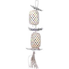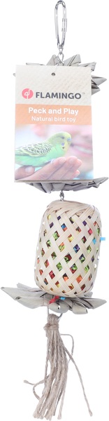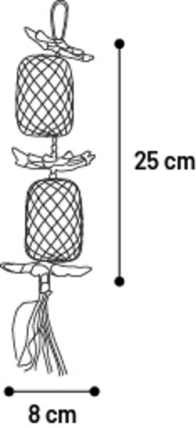 Material: bambú, hojas de palma, yute y madera de pino|Relleno de papel para más diversión|Con diferentes texturas para más diversión al masticar|Adecuado para esconder snacks|Fácil de fijar con sistema de suspensión metálica|Los colores mostrados son indicativos y pueden diferir de la foto|Medidas: 8cm L x 8cm An x 25cm Al