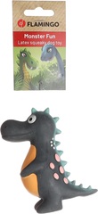 Consiente a tu peludo amigo con este peluche de dinosaurio negro y genial. Hecho de látex suave y con un squeaker para más diversión. Diseñado por Flamingo.