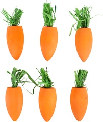 Este juguete para roedores es una pieza de madera en forma de zanahoria de color naranja, diseñada para satisfacer el instinto natural de roer de los roedores, ayudando a mantener sus dientes saludables y fuertes. La madera es segura para masticar y está hecha de madera natural, lo que lo convierte en una opción segura y saludable para su mascota. La forma de zanahoria es atractiva para los roedores y puede ayudar a estimular su interés y actividad, manteniéndolos activos y entretenidos. Es un juguete pequeño, fácil de colocar en la jaula y de manipular para los roedores, permitiéndoles satisfacer su necesidad de roer y jugar.