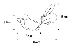 Divertido y colorido juguete diseñado para estimular el instinto de caza de tu mascota. El juguete está hecho de material textil suave y resistente, lo que lo hace seguro para que tu gato lo juegue y lo muerda sin lastimarse. El juguete presenta la forma de un pájaro azul, con plumas de diferentes tonalidades y texturas que atraen la atención de tu gato. Además, el tamaño del juguete es de 8,5 cm, lo que lo hace fácil de agarrar para tu gato, lo que lo convierte en un objeto perfecto para que tu gato lo persiga y atrape. Este juguete es una excelente opción para mantener a tu mascota entretenida y activa, ya que el movimiento y la interacción con el juguete ayudan a promover la actividad física y mental de tu gato, mientras disfruta de horas de diversión.