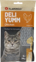 Aperitivo líquido con pollo|Con celulosa y polvo de olmo, que forma una capa alrededor del pelo ingerido y ayuda a prevenir las bolas de pelo|Sin gluten|Se puede untar sobre nuestras almohadillas para lamer Flamingo