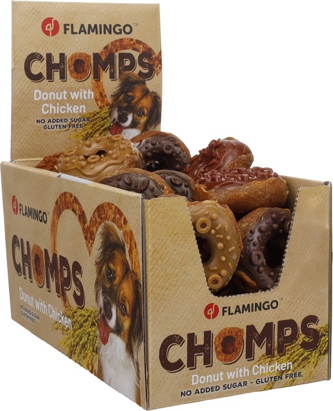 Consiente a tu fiel compañero de cuatro patas con Chomps, la deliciosa dona de pollo. Llena de vitaminas, calcio y hierro para un impulso saludable. Fácil de digerir y sin gluten, sin azúcares añadidos. Un sabroso premio que apoya la digestión. ¡Perfecto para un amigo feliz y moviendo la cola!