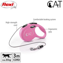 FLEXI CORREA RETRÁCTIL PARA GATO CLASSIC CORDÓN ROSA 3M