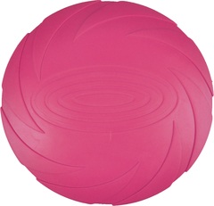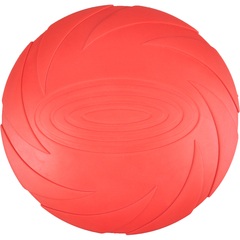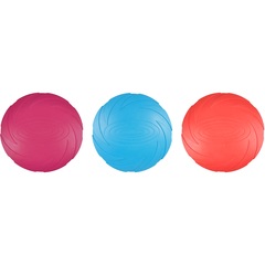 ¡Juega con tu perro y lanza este resistente frisbee de goma lo más lejos que puedas! ¡Perfecto para recuperar y resistente al agua! ¡Garantizado horas de diversión! | Este no es un juguete para niños. Mantener fuera del alcance de los niños. ¡Supervisa siempre a tu mascota cuando juegue con juguetes y no permitas que juegue con juguetes rotos o dañados! Este juguete es resistente, pero no indestructible.
