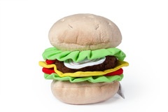 Adicto a la comida rápida? Diente dulce? Goloso? Cualquier que quiera compartir sus preferencias culinarias con su amigo de cuatro patas lo encontrará aquí. Estas alternativas no son comestibles, pero a los perros les gustará comer. Los grandes juguetes de peluche ofrecen todo tipo de golosinas para que los perros jueguen y acaricien, desde dulces hasta salados, por ejemplo, nuestra hamburguesa. El juguete para perros con forma de hamburguesa diseñado con gran atención al detalle, hará las delicias de perros y personas. Ideal para jugar, recuperar y acariciar. El juguete está equipado con un chirrido para una experiencia de juego emocionante. Además, la hamburguesa se puede tirar súper gracias a la cuerda rresistente adjunta.
