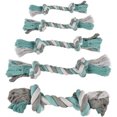 El HS Katoen Jim Knoopbeen es perfecto para tu peludo amigo! Hecho de suave algodón, ayuda a prevenir la placa dental y masajea las encías. Disponible en los colores menta, blanco y gris, y en tamaño S (22 cm). | Este no es un juguete para niños. Mantener fuera del alcance de los niños. ¡Supervisa siempre a tu mascota cuando juegue con juguetes y no permitas que juegue con juguetes rotos o dañados! Este juguete es resistente, pero no indestructible.