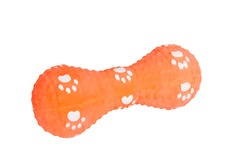 El juguete de látex naranja con un divertido motivo de pata brinda diversión y entretenimiento a los perros. Un chirriador integrado despierta interés y anima a seguir jugando.