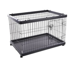 La perrera Pasy es una elegante jaula de acero con recubrimiento en polvo negro. Fácil de limpiar gracias a la bandeja de plástico. Con varias puertas y un techo abatible, tienes mucho acceso. Ideal para interiores gracias a las ruedas.