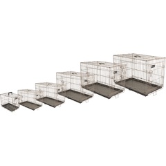 Material: metal con recubrimiento de pintura en polvo de epoxi | 2 puertas con 2 cerraduras deslizantes cada una; XS tiene 1 puerta con cerradura | Plegable y fácil de mover gracias a sus asa extraíble de plástico | Fácil de limpiar gracias a cajón extensible de plástico | Grosor de alambre: XS, XL y XXL: 3,5 mm / S, M y L: 4 mm | Grosor de alambre vertical: XS: 2 mm / S - XXL: 2,5 mm | Grosor de alambre de bastidor: XS - L: 4 mm / XL - XXL: 4,5 mm | Jaula para perro EBO | Gris pardo | M:47x77x55CM