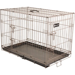 Material: metal con recubrimiento de pintura en polvo de epoxi | 2 puertas con 2 cerraduras deslizantes cada una; XS tiene 1 puerta con cerradura | Plegable y fácil de mover gracias a sus asa extraíble de plástico | Fácil de limpiar gracias a cajón extensible de plástico | Grosor de alambre: XS, XL y XXL: 3,5 mm / S, M y L: 4 mm | Grosor de alambre vertical: XS: 2 mm / S - XXL: 2,5 mm | Grosor de alambre de bastidor: XS - L: 4 mm / XL - XXL: 4,5 mm | Jaula para perro EBO | Gris pardo | XXL:76x124x83CM