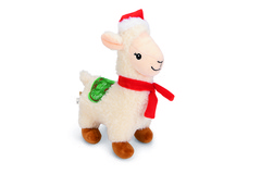 Si estás buscando un bonito peluche de Navidad para tu perro, ya puedes dejar de buscar. Esta simpática llama está vestida con un gorro de Papá Noel, una bufanda navideña y una alfombra en su alfombra en la espalda con fa la la LLama.