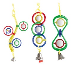 ¡Sorprende a tu periquito u otra ave de jaula con este divertido juguete espejo! El juguete de plástico colorido con elementos móviles, espejos y campanas proporciona empleo variado y evita el aburrimiento. ¡Recibirás 1 de las tres variantes, déjate sorprender!