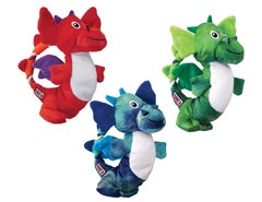 Los juguetes KONG Dragon Knots son una divertida incorporación a la colección Knots. La sensación real de la cuerda anudada del interior, el gran chirriador del cuerpo y el sonido crujiente de las alas mágicas estimula a los perros a jugar y satisface sus instintos naturales. La resistente cuerda anudada para tirar incluye un relleno mínimo para reducir la suciedad y le encantará a su mascota por su diversión sin fin.