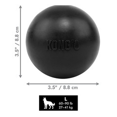 Rebote extremo para un juego activo |Caucho natural resistente a las perforaciones |Tamaño grande |Made in the USA | Materiales de origen internacional |Fórmula de caucho negro KONG diseñada especialmente para masticadores tenaces |Dimensiones: 6,3 cm x 6,3 cm