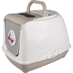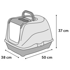 Material: plástico | Fácil de mover gracias a su asa | Incluye un filtro de carbono reemplazable que reduce las molestias por olores | Tapa extraíble con puerta abatible | Con recogedor de arena para gatos