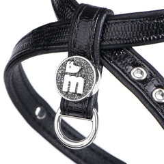 Arnés X negro para perro de la colección Saint Tropez en piel sintètica con acabados en bronce blanco.