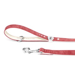 MYFAMILY CORREA DE PIEL ARTIFICIAL BORDADA PARA PERRO - ROYAL - CREMA/BURDEOS (110CMX1,6CM)