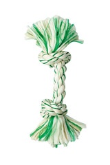 Las cuerdas y los nudos de algodón son un juguete popular para perros. Ya sea para recuperar, lanzar o para jalar y tirar , ofrecen opciones de juego variadas que son divertidas para perros y dueños. Los juguetes hechos de fibras de algodón natural son muy robustos y también cuidan los dientes del cuadrúpedo. Como una ventaja especial, estas cuerdas de algodón verde y blanco tienen un sabor a menta fresca. Están disponibles en diferentes tamaños y se entregan en un paquete nuevo