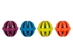 Snackball de goma maciza | Muy robusto | Se puede llenar con snacks | Larga ocupación con el principio de recompensa | Ideal para tirar, atrapar y recuperar | Colores surtidos en 4 colores (azul claro, violeta, naranja, verde claro) | Medidas: ø 7cm