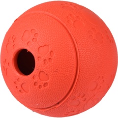 ¡Dale a tu perro un desafío con nuestra pelota de snacks! Llénala con deliciosos snacks o comida seca y deja que tu perro huela y ruede. De vez en cuando, caerá un snack del que tu perro podrá disfrutar. Recibirás 1 pelota en un color sorprendente. | Este no es un juguete para niños. Mantener fuera del alcance de los niños. ¡Supervisa siempre a tu mascota cuando juegue con juguetes y no permitas que juegue con juguetes rotos o dañados! Este juguete es resistente, pero no indestructible.