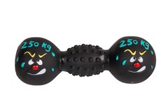 Divertida pesa de vinilo | Para lanzar y recuperar | El chirriador anima a seguir jugando | La estructura de nudos en la parte central masajea suavemente el paladar y las encías. Con dos caras divertidas y la inscripción "250 kg" | Tamaño 19 cm