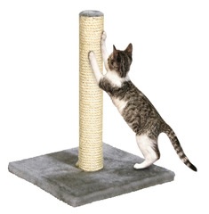 El poste rascador compacto con una placa base cuadrada permite a los gatos afilar sus garras. El tronco rascador está envuelto con una robusta cuerda de sisal. La placa base y la punta de la columna tienen bordes de felpa suave. Disponible en los colores gris y beige.