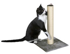 El poste rascador compacto con una placa base cuadrada permite a los gatos afilar sus garras. El tronco rascador está envuelto con una robusta cuerda de sisal. La placa base y la punta de la columna tienen bordes de felpa suave. Disponible en los colores gris y beige.