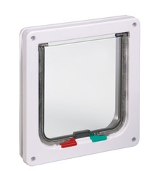 Las puertas para gatos Karlie Porta hacen la vida más fácil para los gatos de casa y sus dueños. Consisten en un marco, una bisagra y una solapa unida horizontalmente. Este último es empujado hacia adelante con la cabeza del animal y luego atraviesa la abertura. Esto permite que el gato cambie entre la casa y el exterior de forma independiente y segura. Una cerradura magnética y un sello de cepillo hacen que la puerta del gato sea rresistente a la intemperie y a los borradores. Gracias al sistema de bloqueo, también se puede controlar si el gato puede entrar y salir según lo desee o si el uso está restringido. La puerta mecánica para gatos con cerradura de 4 vías ofrece la opción de abrir (entrar y salir) y cerrar, y las opciones solo entrar y salir. La puerta está disponible en blanco y marrón.