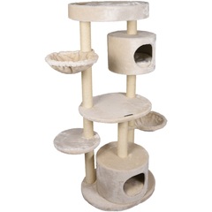 ¡Dale a tu gato el palacio que se merece con este hermoso y grande rascador! Cubierto con suaves telas de felpa y con postes de sisal de 7,5 cm de grosor, este rascador es adecuado para razas de gatos más grandes o varios gatos. Con 2 hamacas para gatos y 2 casitas, tu gato puede retirarse para una siesta tranquila. La sólida base de 60 x 50 cm asegura que el rascador se mantenga firme en el suelo. Y con su atractiva combinación de colores suaves, se adapta a casi cualquier decoración.