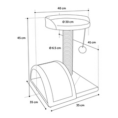 Material: felpa suave (210 g/m²) | Poste rascador con cuerda para rascador de yute (4 mm) | Diámetro poste rascador: 6,5 cm | Plataforma de descanso | Con juguete y ratón sonoro para que disfruten jugando
