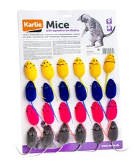 24 ratones de juego aterciopelados | Apelan al instinto de caza | Proporcionar ejercicio y ocupación. | Con chirriador | Colores surtidos en 4 colores en tarjeta de presentación