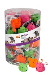 Lindos ratones de algodón | Recuerdan a animales de ganchillo con su estructura. / Se pueden cazar y tratar con las patas / Con cascabel | Con fragancia Catnip / Colores surtidos en un tambor / 60 piezas
