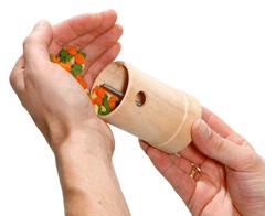Emocionante rollo de madera para roedores | Se puede llenar con snacks | Los bocadillos se caen empujando y girando | El animal aprende a "conseguir" su comida de una manera lúdica | Ocupación | Llenado fácil | Medidas: 6cm x 6cm x 11cm