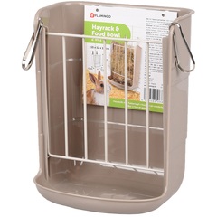 SOPORTE PARA HENO / CUENCO DE COMIDA 2 EN 1 PARA ROEDORES FLAMINGO (15 x 12 x 18 cm)