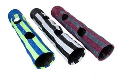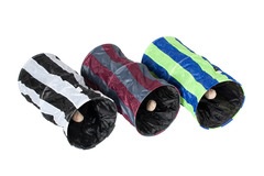 Túnel de susurro de nylon duradero | Apto para uso interior y exterior. Fácil de limpiar | Forma del túnel reforzado con un anillo. Fácil montaje y desmontaje | Longitud del túnel pequeño : 50 cm, incluye pelota de juego, longitud del túnel medio: 90 cm, una apertura adicional, longitud del túnel grande: 136 cm, 2 aperturas adicionales | Diámetro: 25 cm | Colores surtidos en 3 colores (azul-verde, negro-blanco y gris-burdeos)