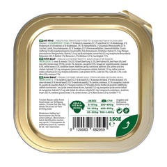 Menús de alimento completo de calidad superior para cachorros, perros adultos y perros mayores, con un 71% de carne, así como verdura, muchas vitaminas y minerales. | Disponible en tres formatos: 150g - 400g - 800g