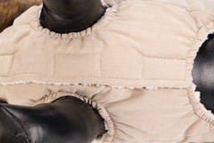 Resistente al agua | Suave piel de oveja en el interior | Fácil sujeción mediante un cierre de velcro | Cremallera, para sujetar a un collar o arnés | Lavable a 30 grados | Disponible en 2 colores y 6 tallas